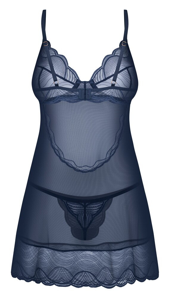 Эксклюзивная женская ночная рубашка бренда Obsessive, модель Nightly Blue – это предложение для женщин, которые ценят утонченную элегантность в сочетании с ноткой чувственности. В комплект входят кружевная рубашка и стринги соответствующего цвета. Пеньюар изготовлен из нежного, прозрачного кружева голубого оттенка, подчеркивающего фигуру и придающего женственному шарму. Чашки с косточками обеспечивают привлекательное декольте и надлежащую поддержку. Воздушный материал гарантирует комфорт при ношении и приятные ощущения на коже.
