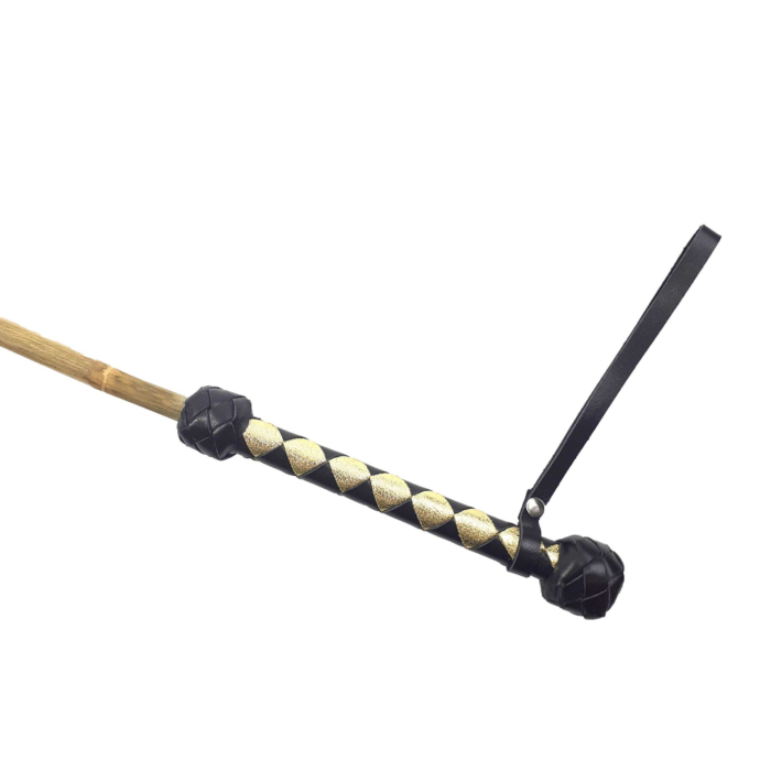 16. Трость бамбуковая 75 см , рукоятка натуральная кожа, черно-золотая