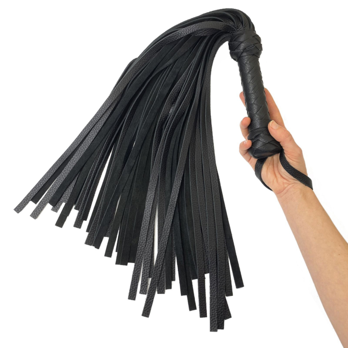 35. Черный флоггер классический, натуральная кожа, 50 хвостов, по 50см, рукоятка 20см