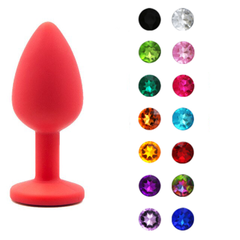 14. Анальная пробка Baby XXX красная силиконова L с кристалом