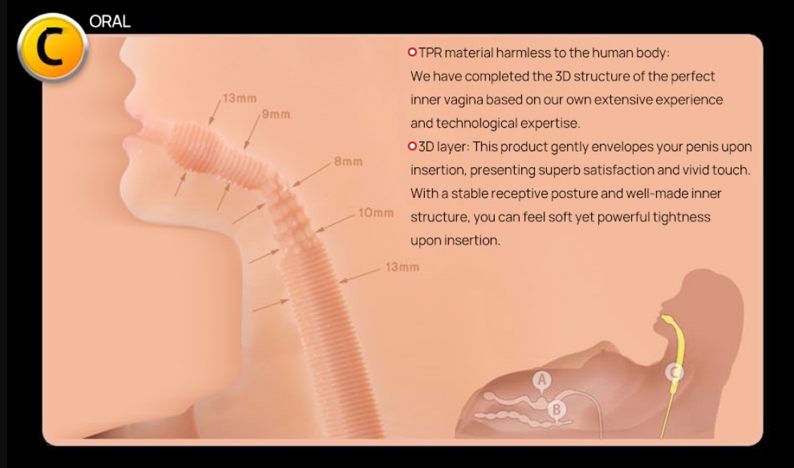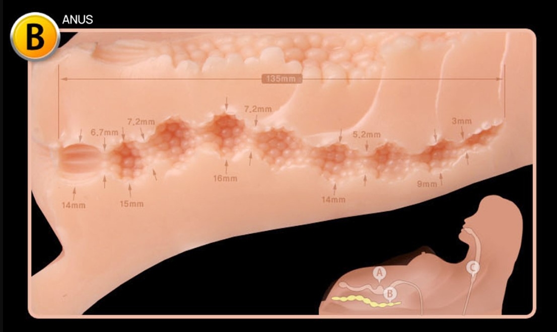 - Вагина: Внутреннее поперечное сечение при введении во влагалище: Узелки точки G + узелки капли воды + многомерная кривая. Складки вагинальной манжеты: морщины вагинальной манжеты и реалистические сужения. влагалища сужаются к одному концу: Дизайн предлагает больше разнообразных ощущений с внутренней поверхности