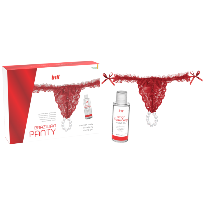 Набор лубрикант и трусики Intt Brazilian Panty red