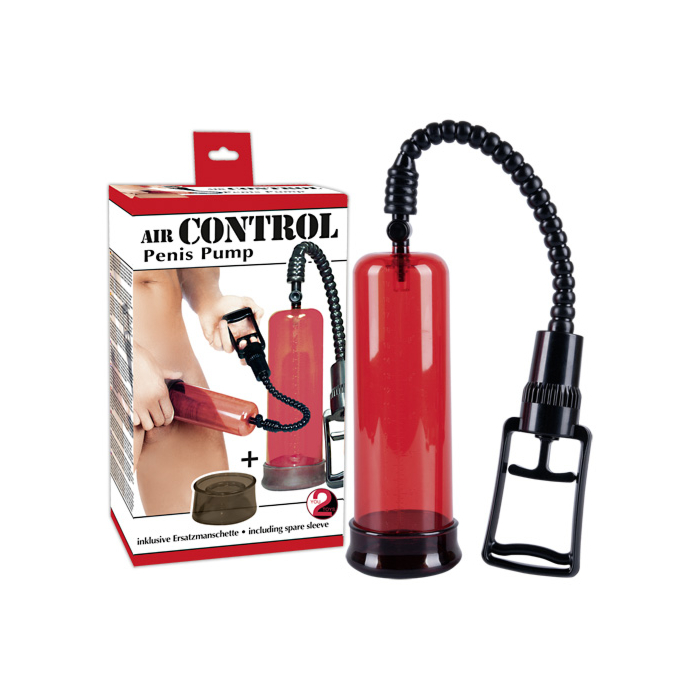 Красная помпа с мерной шкалой, удобно держать в руке. Длина 22 см, диаметр 6,5 см.