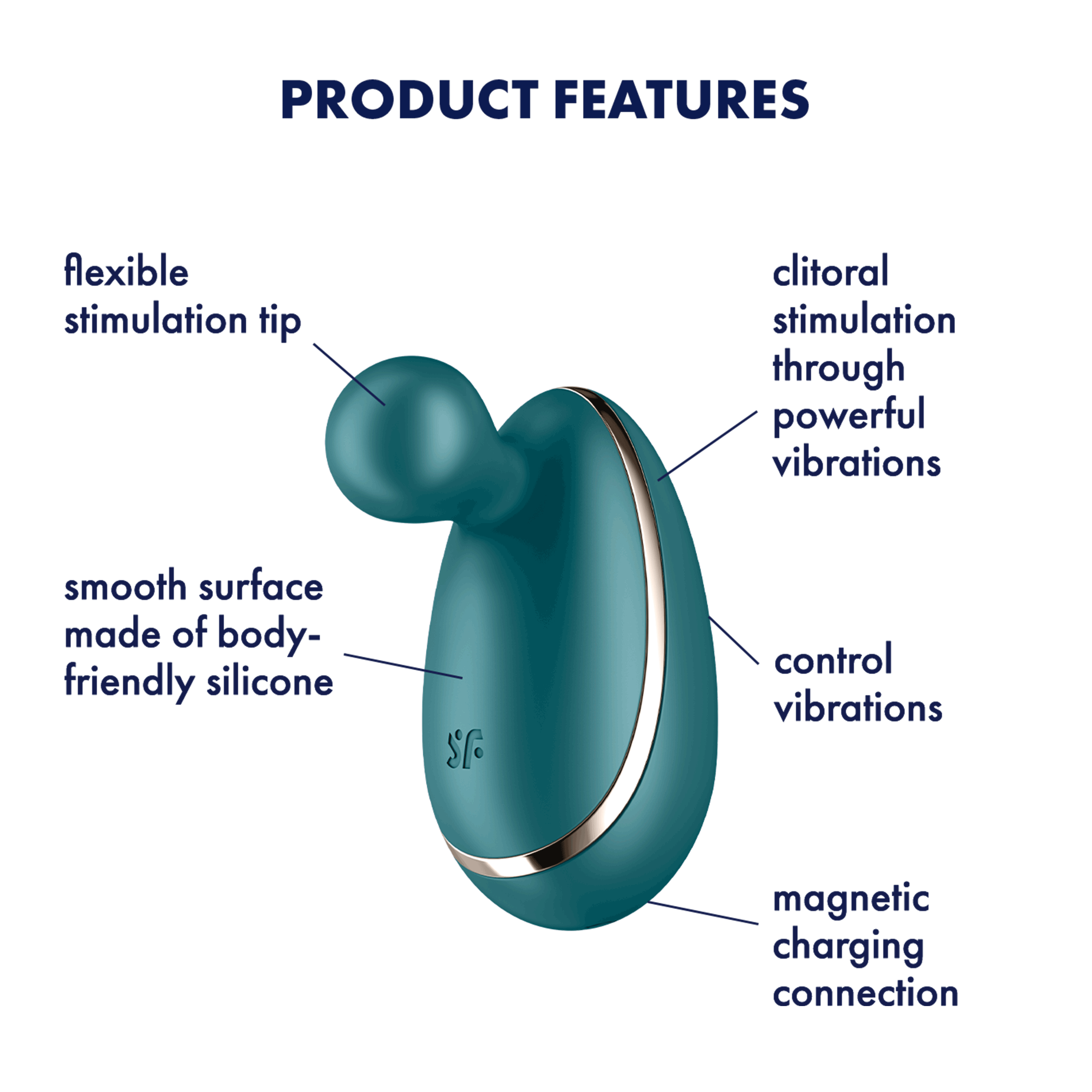 Глубокие и прямые вибрации, точно сфокусированные на вашей особой горячей точке: Это то, что вы получаете из Spot On 1 благодаря его гибкому наконечнику. С этим вибратором вы будете наслаждаться целенаправленной стимуляцией клитора, дающей особо интенсивные оргазмы. Сильный мощный мотор передает свои глубокие вибрации и выполняет все ваши желания с помощью 12 различных программ. Гибкий наконечник концентрируется на клиторе, а крепкий корпус Spot On 1 идеально лежит в руке и передает свои вибрации в окружающую среду. Простой в использовании и управлении лежащий вибратор покорит как неопытных, так и опытных поклонников Satisfyer. Игривый, вневременный дизайн с блестящими подсветками по бокам придает привлекательность Spot On 1 как вашему новому идеальному лучшему другу.