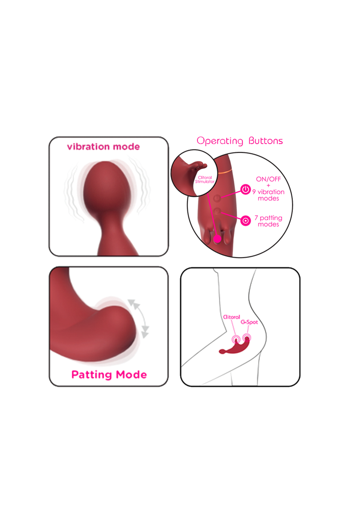 Секс-игрушка является вибромассажером с одной стороны, с помощью которой вы можете стимулировать свои любимые эрогенные зоны, используя для этого 9 различных режимов вибрации.