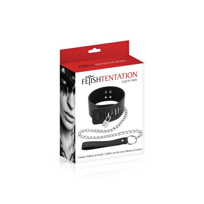 Нашийник із замком та з повідцем Fetish Tentation Padlock and Leash