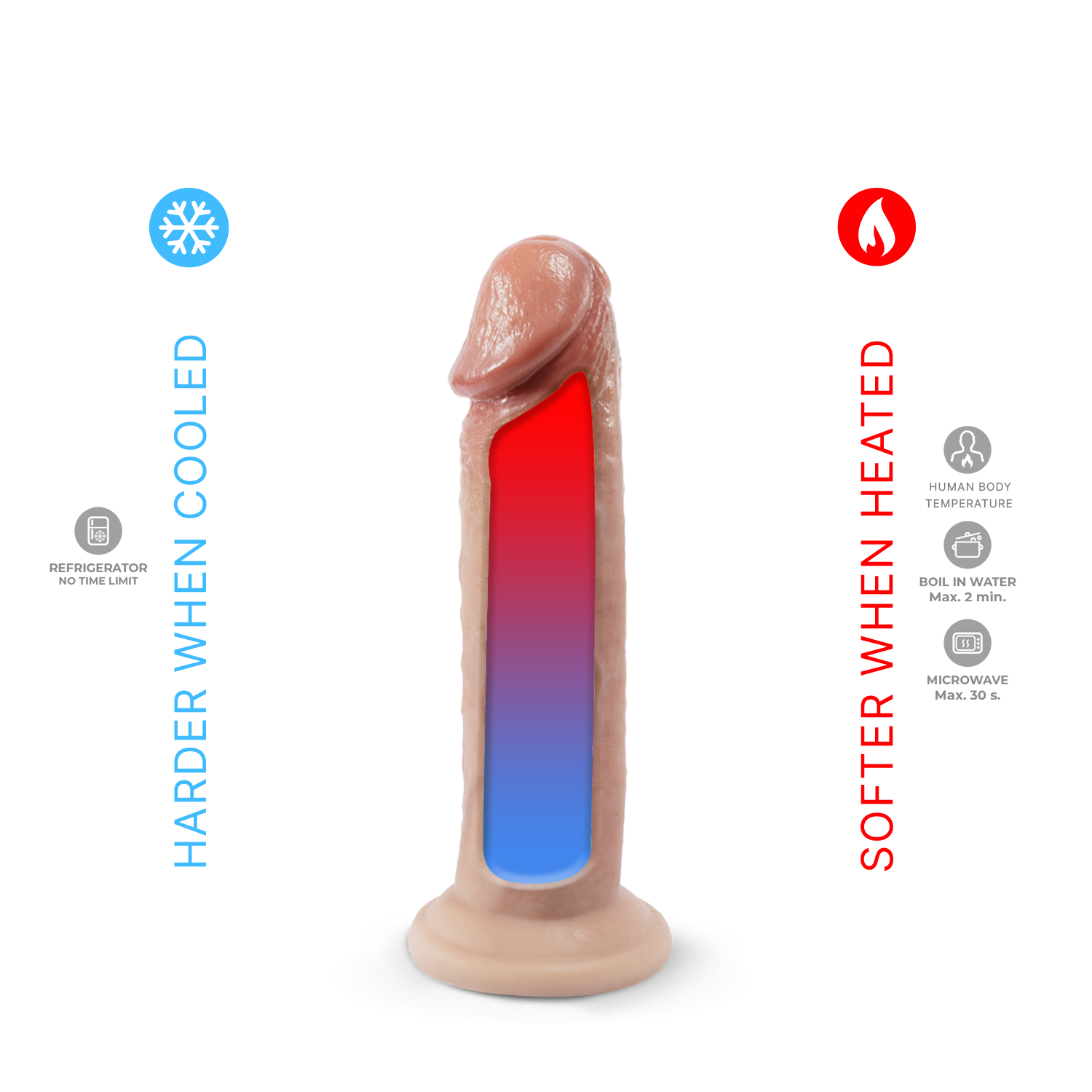 Ця модель виготовлена з інноваційного термореактивного силікону, який м'якшає при нагріванні і твердне при охолодженні, природно пристосовуючись до температури вашого тіла для глибоких відчуттів. М'який зовнішній шар і тверда основа створюють ідеальний баланс між комфортом і тиском, забезпечуючи реалістичне задоволення при кожному русі.