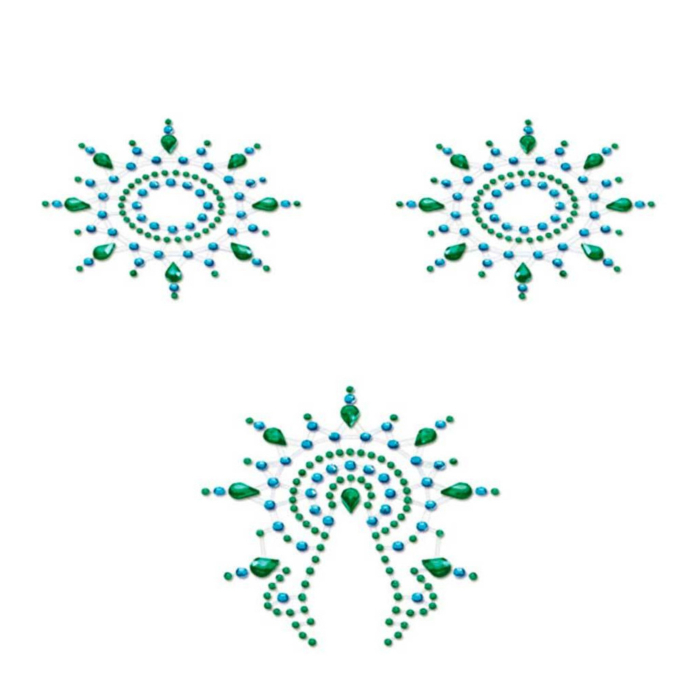 Пропонуємо купити пестіс Petits Joujoux Gloria set of 3 - Green-Blue - гламурний набір ювелірних кристалів, який матиме чудовий вигляд як доповнення образу сексуальної спокусниці. Понад 200 блискучих каменів на вашому тілі зроблять вас чарівною!