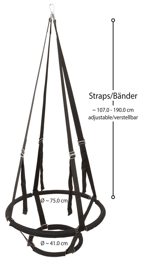 Любовні гойдалки Sex Swing Ring від Y2Toys дозволяють приймати різноманітні позиції за допомогою правильного розгойдування. Геніальна конструкція з 2 металевими кільцями різного розміру, м'якими м'якими накладками та широкими, стійкими до розривів ременями забезпечує надійну фіксацію та зручне сидяче положення.