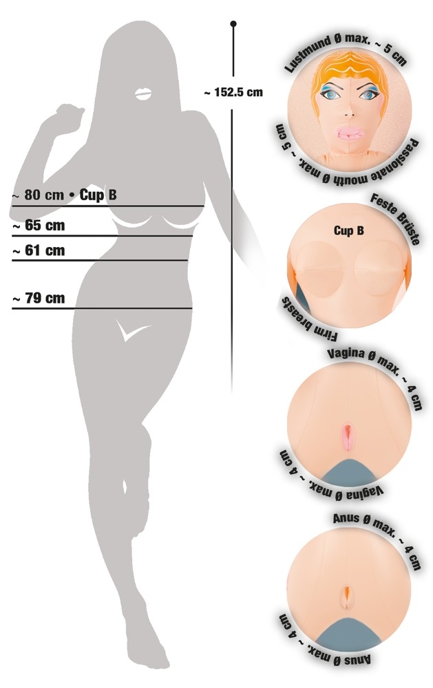 Ваша партнерка для диких пригод у світі сексу. Підкоріть її вологу вагіну та вузький анус. Розмір реальної величини, волосся кольору блонд.