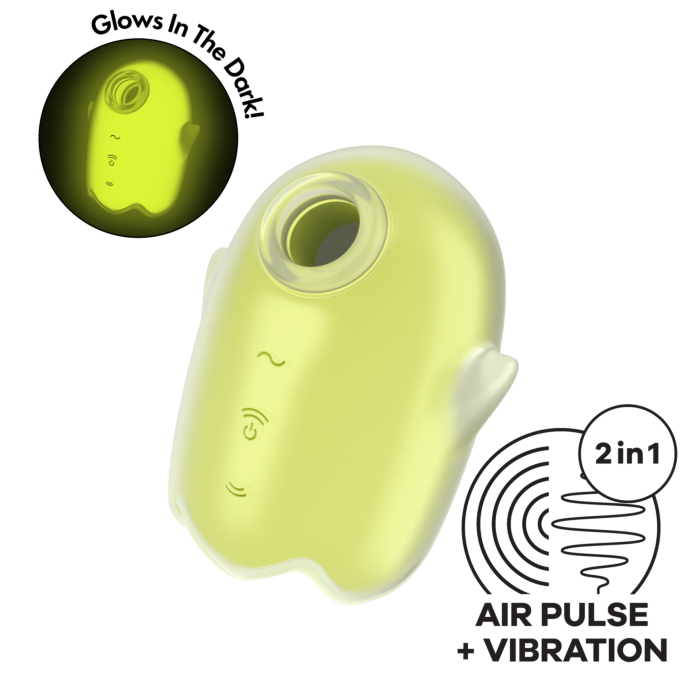 Satisfyer Glowing Ghost - ідеальний вібратор для тих, хто не має досвіду використання вібраторів або інших любовних іграшок: Завдяки своєму милому дизайну і компактному розміру, цей хвильовий вібратор не відлякає новачків. Завдяки поверхні з надзвичайно м'якого, приємного для шкіри силікону, отвір цього повітряно-імпульсного вібратора Satisfyer ніжно охоплює ваш клітор і стимулює його гарячими і безконтактними хвилями тиску. Завдяки 11 різним рівням інтенсивності ви самі вирішуєте, наскільки інтенсивною має бути стимуляція. А для ще більш сексуальних мурашок по тілу, цей виріб для задоволення має 12 додаткових програм вібрації, які ви можете комбінувати з хвилями тиску. Функцією вібрації можна керувати незалежно, тому ви також можете використовувати маленького примару як класичний лежачий вібратор.