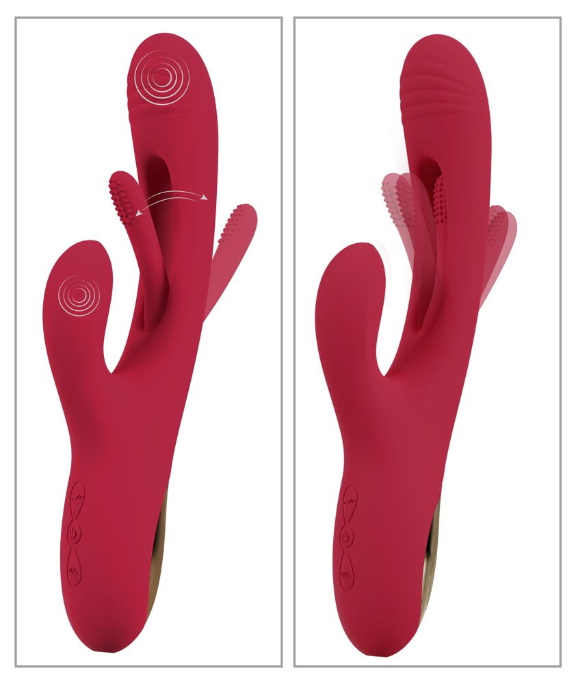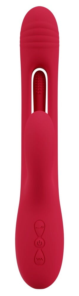 Маленький м'який язичок для функції flicking tounge захований у твердому стрижні і ритмічно коливається вперед-назад, стимулюючи постукуванням у 7 режимах. Вібрації ребристої головки та кліторального стимулятора також пропонують різноманітні варіанти пестощів з 7 різними режимами кожен. Всіма функціями можна зручно керувати безпосередньо на іграшці одним натисканням кнопки - окремо або у збудливій комбінації. Три двигуни забезпечують надійну потужність. Навіть у ванні та душі, адже вібратор кролика водонепроникний.